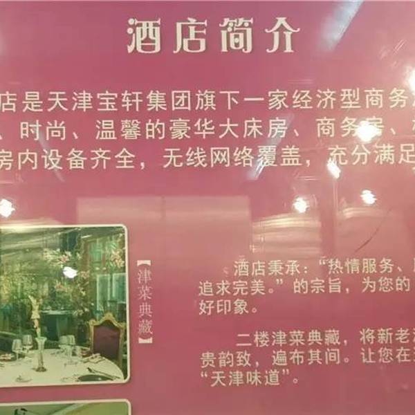 我们入住的宝轩酒店三楼客房,二楼就是津菜典藏,他们两家都属于宝轩投资集团(旗下拥有“耳朵眼”、“津菜典藏”、“宝轩渔府”、“宝轩酒店”、“禅素”、“大福来”六大品牌)。津菜典藏在大众点评上评论很多...