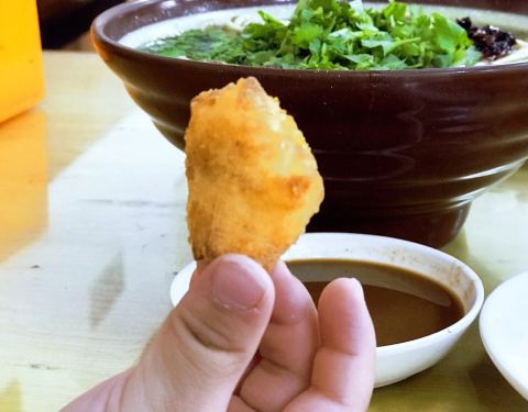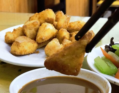 如果还有胃口,可以要一份炸豆腐,很酥脆,蘸着料吃,很好吃