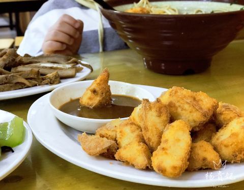 在长辈们连续三天早餐吃“米记”后, 贪新鲜的我终于受不了了, 带娃直接打车来小舅妈推荐的拉面店, 因为她头一天说“好吃”了两遍, 不来对不起她的赶脚 炸豆腐必须点, 下单现炸上桌还烫手, 配着酱汁蘸着吃不要太香呀, 里边的豆腐嫩的像奶酪, 外皮酥到掉渣! 拉面汤绝对是牛骨熬的老汤了, 浓的都发粘, 味儿太足了 就是有点儿咸, 老汤嘛能理解, 然后我最后喝了两碗水, 还发现了墙上的奖牌 素什锦这个挺好, 配菜超多种类的, 清淡口儿搭配拉面正好。 牛肚有点儿咸, 讲真我算是挺重口的了。 再加上牛肚感觉放一段时间了, 口感虽然是不错, 但是新鲜度上差了点儿。 这我也很满意了, 换花样儿的心情总是很愉悦的。 下一站,戴记糖坊伴手礼, 走起……