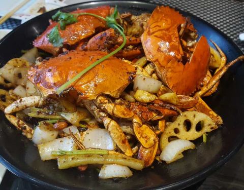 这是一家有点历史的饭店了,据我所知至少开了6,7年了,生意一直还是不错的,必然有独到之处,来这里主要就是冲着他家的香辣蟹来的,基本上如果是两个人一起来的话要一只螃蟹就行了,还可以点一些菜,比如土豆啊,各种蔬菜,虾,把这些放到锅里一起炒,最后出来有点类似麻辣香锅的味道,但是一般的麻辣香锅可是没有大螃蟹的,说一下这个螃蟹吧,是真正的好螃蟹,当然价格也不便宜呢,大的要200多一只,但是肉真的很多,很肥,抄完辣辣的吃起来非常过瘾,爱吃的话还是很值的。大拌菜建议来一份,可以解解辣,也可以解腻,最后要碗疙瘩汤,这个提前要,不然最后你嘴里辣辣的,这个可喝不下去,水煮鱼和螃蟹不要一起点,因为你根本吃不完,这家的水煮鱼也相当好,可以单独去吃一次,就不要点螃蟹。总之爱吃螃蟹的,爱吃辣的朋友我推荐来试试这家。