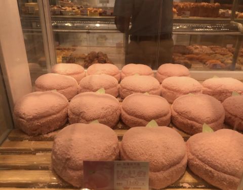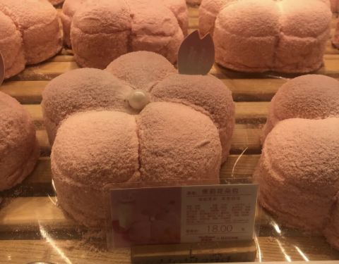 现在店里有rio联名蛋糕售卖(挺贵的,图一的小桃心要二百多) 另外还有甜甜圈新品目前买三赠一! 对了!还有两个新款粉色面包: 玫瑰桃气包和茉莉花朵包 看着粉嫩嫩的很可爱!(颜值大于味道)[笑哭] 对了!任意消费送充气发卡:超萌的那种