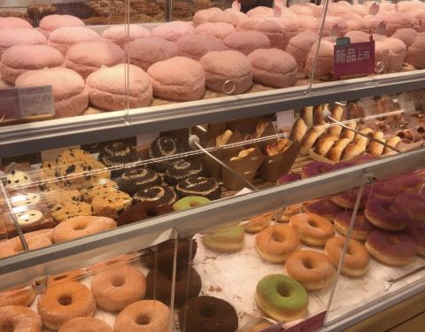 现在店里有rio联名蛋糕售卖(挺贵的,图一的小桃心要二百多) 另外还有甜甜圈新品目前买三赠一