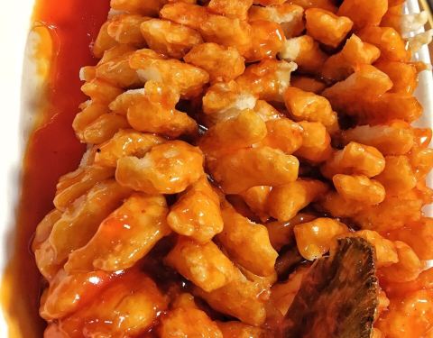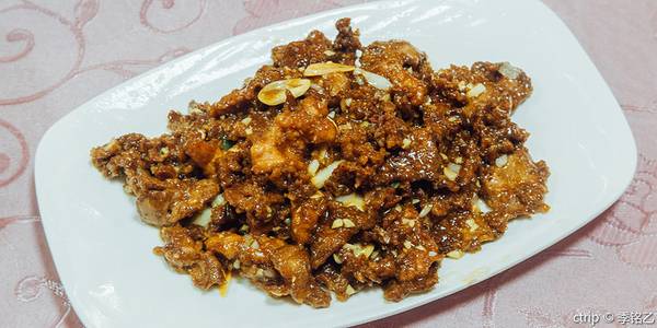 一个不太起眼的小餐厅,餐厅内人头攒动,人气爆棚。内部装修简洁明亮,桌椅摆放整齐,很是舒适,墙上挂满了盆栽,给餐厅增添了几分绿意。干煸鱿鱼须,炸至金黄,麻麻脆脆的,不辣甜口,很有嚼劲。