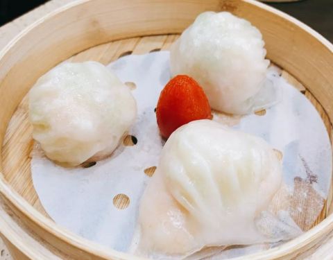 ...金牌虾饺皇招牌,每个虾饺里有3只虾仁,很饱满,金莎海虾红米肠,里面也有虾仁,外面有芝麻,还不错