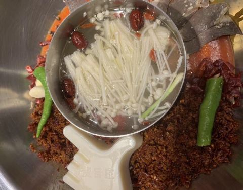 锅底选择红锅,必须红锅呀不然怎么可以目睹到可爱陈赫的八字手势呢,全红锅底辣味十足,还带了点卤味特别的香浓,不能怎么吃辣的宝宝们都可以点,不是很辣哦。 手剪香菇肥肠:新鲜出炉的卤味肥肠、卤香的味道实...