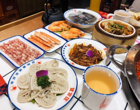 闺蜜是陈赫的铁杆粉丝儿,吵着要来吃他家的火锅。于是我们舍命陪君子,排队排了两小时终于吃上了。 为了对得起排队时间,放开了点了一大桌。店里有曾小贤的3D漫画版,可以坐在旁边一起拍照。还有二维的漫画墙,看起来就很欢乐。 菌汤鸳鸯锅 相信我 辣度选微辣足够了,微辣就已经辣得足够爽叻。辣锅里好料多多,鹌鹑蛋、卤牛肉、牛舌、牛油、红辣椒。。。看起来就很诱人,卤水火锅吃起来更香。 毛肚 空运九尺鹅肠 都是川味火锅必备,鹅肠和毛肚都是煮个15秒左右,脆爽鲜嫩,嚼劲十足又麻辣过瘾。 川卤最近大行其道,这里的卤味也是必点的。 一碗牛杂 牛肝、牛肠、牛肺、萝卜。。。每样都很入味,闺蜜吃得不亦乐乎。 笋片王 笋片也是每次川味火锅的必选,一定要多煮一会儿,入味的笋片又香又辣,吃起来特别过瘾。 血旺 红彤彤的一碗血,是不是也寓意着来年一片长虹?血旺要多煮一会儿,直到浮起来才能吃,嫩滑细嫩的血旺吃了好几块。 老街冰汤圆 红糖冰粉 吃川锅也不能忘了川味甜品。更喜欢冰汤圆,配料多多,甜蜜解辛辣。