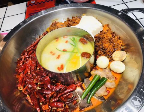 吃火锅就要牛油辣锅给力,一烧开一股扑鼻的香味。曾小贤陈赫携手朱桢叶一茜开的明星网红火锅哦