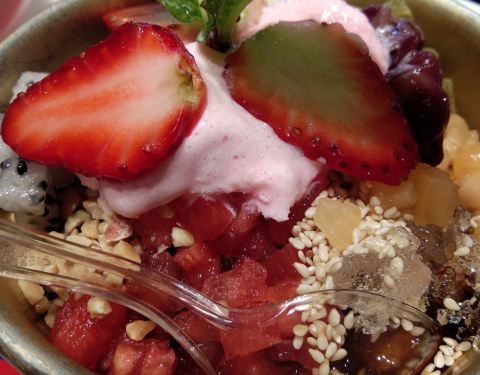 老街冰汤圆 红糖冰粉 吃川锅也不能忘了川味甜品。更喜欢冰汤圆,配料多多,甜蜜解辛辣。