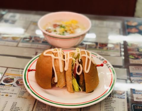 13号南京西路站入口处的茶餐厅,对面是日式拉面店,吃好直接搭地铁回家,还是非常的方便; 虽然已经晚上8点多,一人食,还是点了猪扒包➕艇仔粥,花了56块,感觉晚上吃这么油腻,还是有点罪恶感啊…… 上菜速度不快,猪扒包一分为二,端上来就浇上了色拉酱,其实我不喜欢这个酱,哎,还是原味是好吃; 猪扒煎的不错,肉质️汁水,也不老,其实吃一半就够了,为了不浪费,另一半也吃到我肚子里了; 粥不太浓稠,味道还挺鲜的,如果再浓点就好了; 环境么就是标配的港式风格,放着初中时的偶像郭天王的歌,让我在店里多坐了半小时,难办怀个旧,也蛮好的!