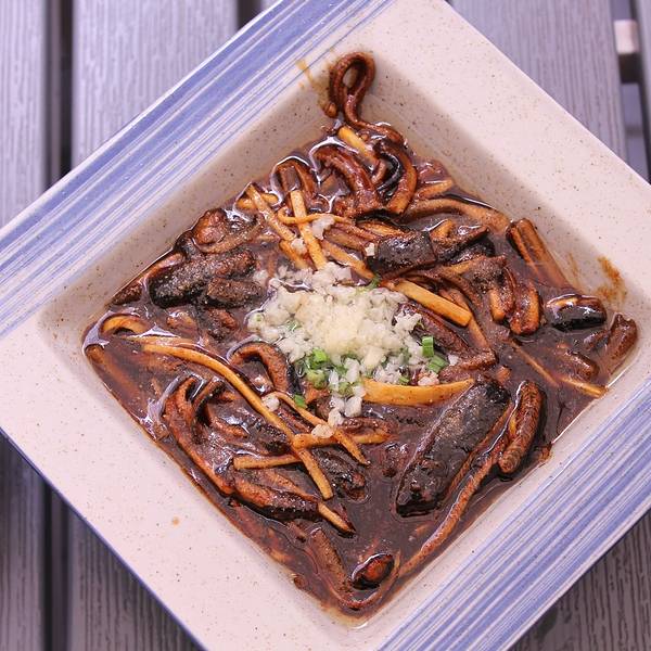 浓郁的酱汁渲染出的厚重颜色,除了酱汁味道外还有淡淡的芥末味