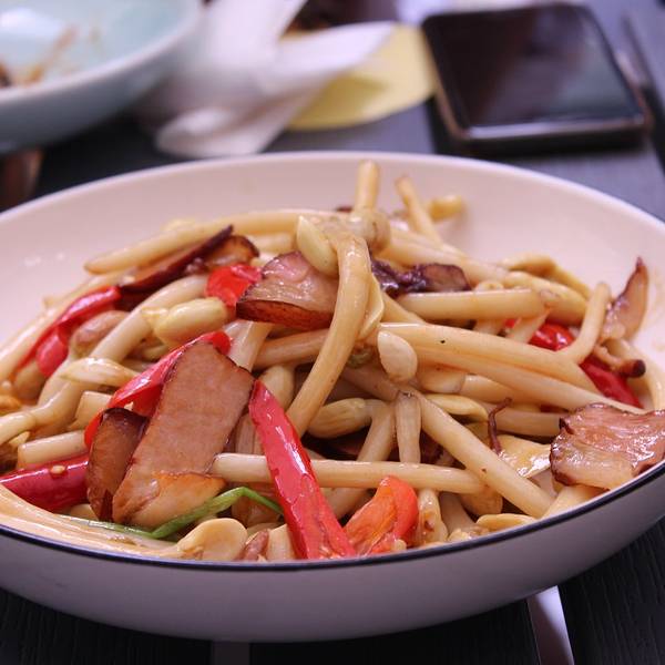 花生芽还是头一次见到,比普通的黄豆芽粗三四倍,脆爽口感也翻倍。 配上充满烟熏味道的腊肉,脆爽可口。芥香牛肉粒