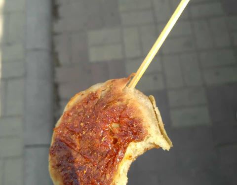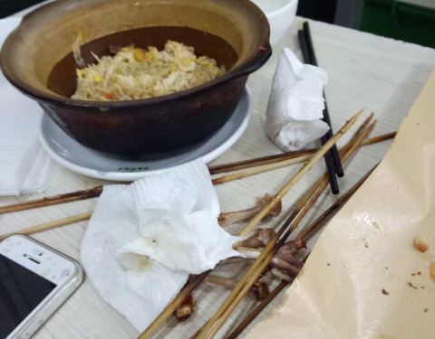 在新华路上 其实是一条很小的巷子。 门面较简陋,室内矮矮的,楼上楼下两层,多是本地的食客,看来相当地道正宗。他们家的烧烤真是不错,烤的手艺好,鸡翅很嫩入味,所有的烤串最后都加了些甜面酱,所以甜甜微酸,味道很棒。本地好吃一般都隐藏在这种小巷巷里。