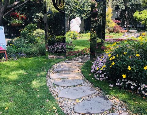 艺术馆漂亮的建筑,外墙上浓绿的爬山虎,设计感超强的花园水池,还有得丘生活家中的书画和大厅里的...