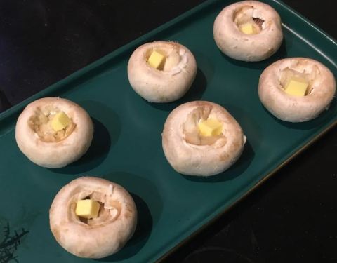 ...,7张桌子,上菜速度挺快的,厚切五花肉,烤得焦一点,非常香,黄油口蘑,烤好了色泽金黄,味道不错