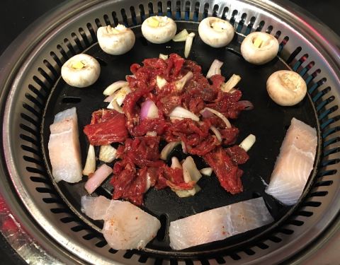 优门烤肉 比较小的一家烤肉店 工作日晚上人还算多 排队半小时 老板比较热情 环境稍差 不通风 味大 牛肉鸡肉鸡心 肉类中规中矩吧 墨鱼饼倒是不错 墨鱼味还算有 蘑菇一般般 放了一小块黄油 噱头大于实际意义 生菜...