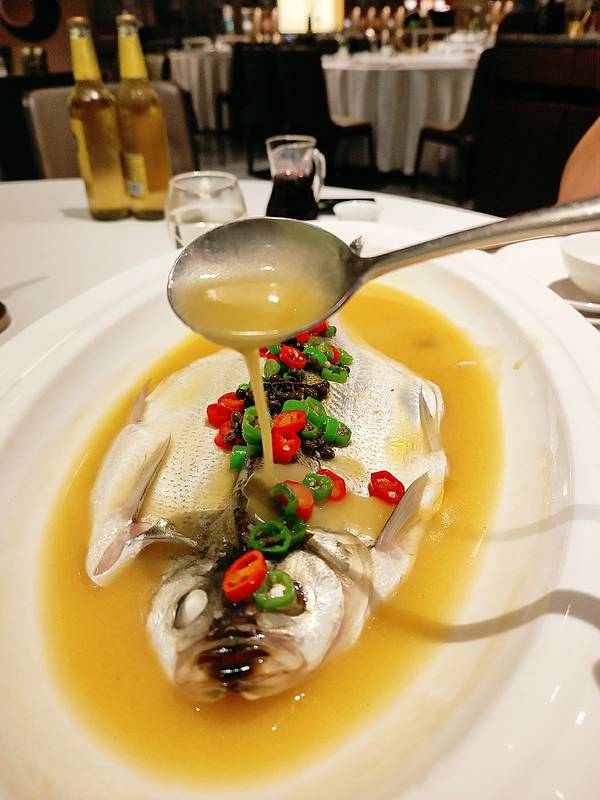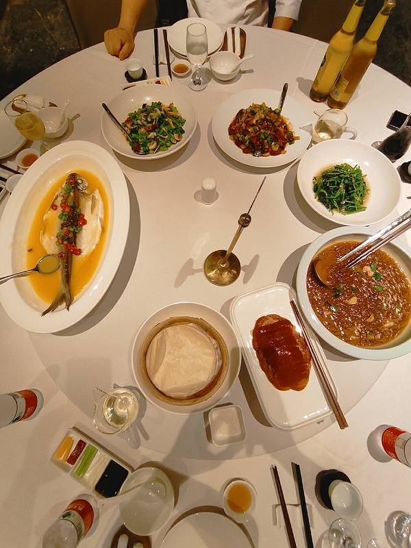 之前朋友宴请在这家酒楼吃过饭,在酒店里面的位置比较隐蔽,一点在附近就来吃个便饭! 【菜品】 抱腌菜炒黄牛肉:选用杭州特色抱腌菜和牛肉一起炒,抱腌菜本身的咸酸味让嫩牛肉更加开胃,超适合下饭! 北京酥不腻烤鸭:他家的烤鸭上次第一次吃就赞不绝口,上桌鸭皮呈枣红色油光锃亮且饱满,最肥的蘸白糖吃满口油香,鸭肉也没有腥味,鸭架可以椒盐或者做菜泡饭,比某些知名烤鸭店好吃太多! 椒香汁白条:一整条白条用鸡汁煮,加入了川渝风味的青红椒和青花椒多了椒麻感,鱼肉肉质很嫩一抿就化,很鲜没有土腥味,吃的时候要小心卡刺! 沙蒜绿豆面:这是一道台州特色菜,沙蒜是海葵中的一种仅在台州海湾出产,所以沙蒜绿豆面在台州一带是家喻户晓的招牌菜,也是新荣记的看家菜。而在他家吃到这道菜的时候被惊艳到了,汤头是用包头鱼的鱼身吊的高汤,再加入沙蒜煮,鲜上加鲜,一口下去味道醇厚鲜掉眉毛一点都不夸张,称得上至今吃过之最! 手捏菜蘑菇炒土鸡蛋:看着平平无奇的一道菜,莫名的鲜,特别是手捏菜用的菜心为主吃着很脆甜! 手工韭菜鲜虾煎饼:纯纯的虾肉肉眼可见,韭菜清甜多汁,饼皮薄脆,冷了也好吃完全不会回软! 环境:虽然店在酒店的里面,但一上楼新中式的装修风格比楼下大堂好多了,别有洞天,据说是黄龙饭店玉玲珑餐厅同个设计师设计的还获得过大奖!包厢很大可以容纳20人同时就餐,茶几休息等功能区划分的很好,还有可以摆放四十几桌的宴会厅,明档点菜菜品新鲜,烤鸭也是现烤一目了然! 服务:服务员都是女性,态度都很不错,符合标准酒店式服务! 总体来说环境,味道,服务都是一流,唯一就是从外面看酒店不是很明显,属于一个比较隐蔽的酒楼!