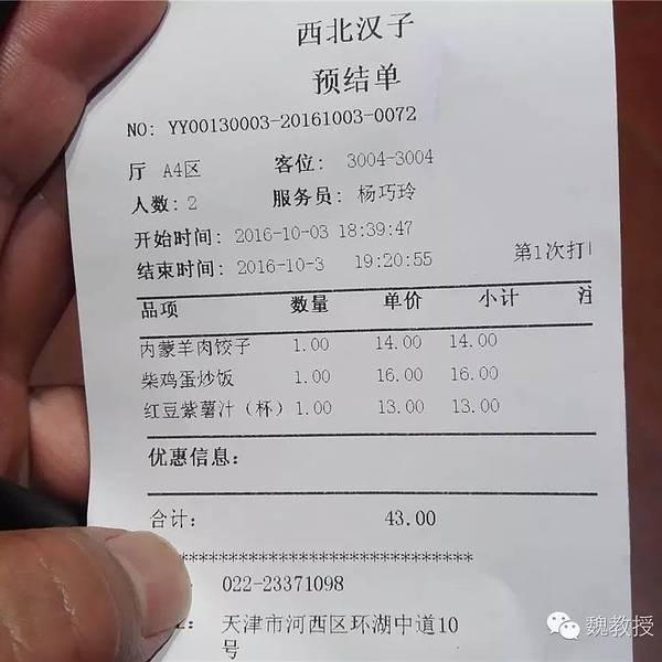 10月3日上午去了大沽口炮台 ,中午到航母主题公园 ,没有顾上吃午饭,一直到晚上回到宝轩酒店,才又到马路对面的西北汉子(体北店)吃蛋炒饭和饺子,这蛋炒饭是相当的好吃,不油腻,就是太少了,魏小宝吃了一半,...10月3日上午去了大沽口炮台 ,中午到航母主题公园 ,没有顾上吃午饭,一直到晚上回到宝轩酒店,才又到马路对面的西北汉子(体北店)吃蛋炒饭和饺子,这蛋炒饭是相当的好吃,不油腻,就是太少了,魏小宝吃了一半,之后再配上热的红豆紫薯汁,滋润到心田;羊肉饺子膻味犹存,味道也好。吃完结账43元。