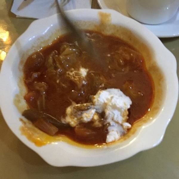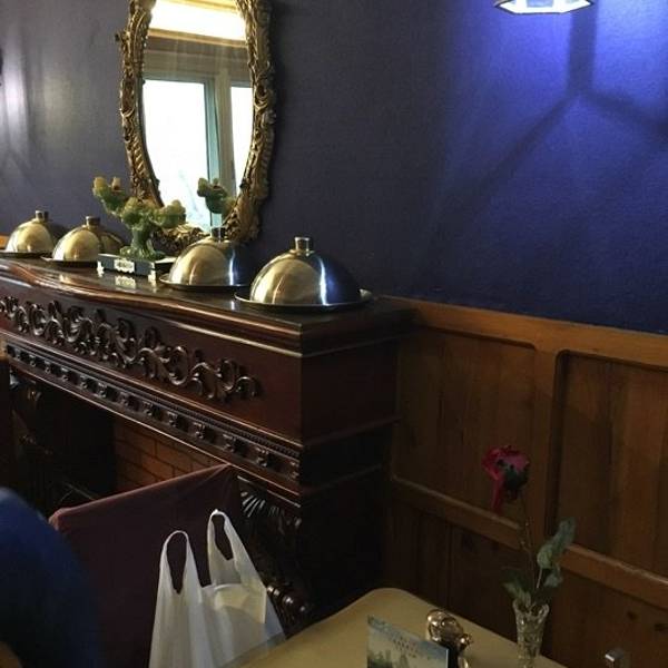 没什么服务可言 领个座点个菜就完了 点了红菜汤12 罐牛肉58 土豆沙拉18 铁板巴沙鱼58 苹果派18 海鲜焗饭38 罐牛肉就是红萝卜焖牛腩 算是这几个里面唯一可以点的菜 铁板巴沙鱼是点单的老啊姨推荐的 锡纸盘就叫铁...没什么服务可言 领个座点个菜就完了 点了红菜汤12 罐牛肉58 土豆沙拉18 铁板巴沙鱼58 苹果派18 海鲜焗饭38 罐牛肉就是红萝卜焖牛腩 算是这几个里面唯一可以点的菜 铁板巴沙鱼是点单的老啊姨推荐的 锡纸盘就叫铁板 几粒蟹味菇和蒜头焗的鱼 蒜头超多 想拿那汁拌个饭还得先把蒜头一颗颗挑出来 苹果派真心不好吃 苹果馅酸 派底厚又不酥 红菜汤就是罗宋汤 这个价钱不过不失 最夸张的是那个海鲜焗饭 铁碟白饭 拌了洋葱跟红萝卜在里面 旁边铺了几个冰鲜虾仁和几粒冰鲜巴沙鱼 面上洒了芝士粉 还焗焦了 整个饭没有味道 男朋友说这个简直颠覆了他对海鲜焗饭的印象 整顿饭232 吃完下来 袁世凯的孙女儿没见着 也没有任何一个菜一样服务一个点值得我再来 真要再来 可能也只会是因为走太累坐下来 喝一杯十块钱的即溶咖啡(点了咖啡的隔壁桌说的) 喝了就走