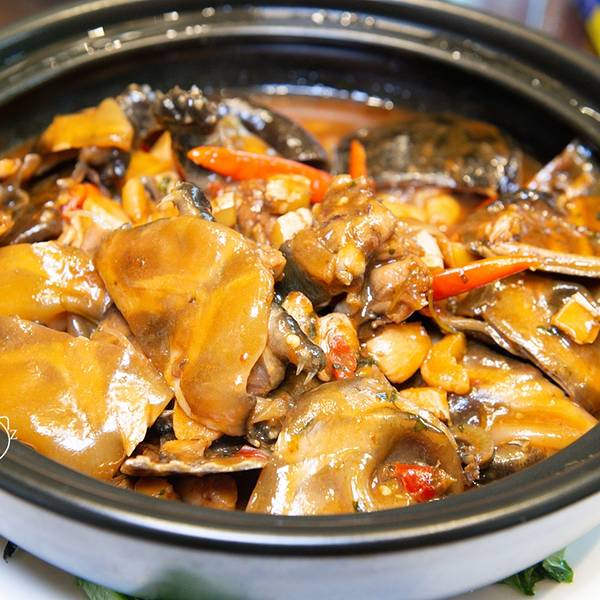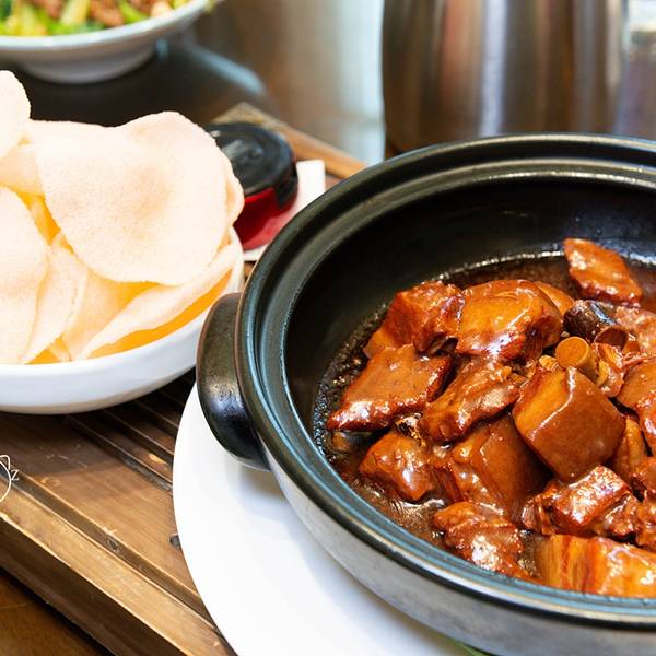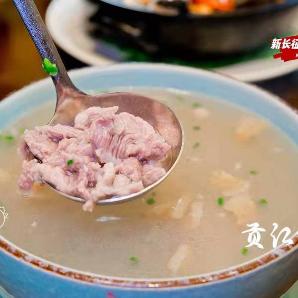 🏠贡江楼(于都店) 📌地址:江西省赣州市于都县红旗大道39号 🚌交通:于都5路“烟草公司”站下,往前走80米贡江楼,说是县城比较有特色,又有些档次的饭店,处在繁华路段,门口不是很县眼,不留意看,就掩没在一堆商铺中。一进大门,迎面而来是一种古朴但又厚实的感觉,有步梯也有电梯上楼,墙壁上还画有一幅“于都县美食地图”,展现了于都全县各个乡镇的乡土美食。电梯口还陈列着饭店所选用的,来自深山的食材。 坐的包厢,装饰简洁但又高雅,不算很大,坐着也舒适,服务态度还行,菜品份量适中,门前路边有免费停车位。佬俵氽前夹 贡江楼的招牌菜,名字绕口,看名字,我一个外来的也不知是啥,上菜一看,原来是一款瘦肉汤,精选的前夹肉很嫩又滑,汤香口,非常的美味。苏区红烧肉 贡江楼的招牌菜,以五花肉为制作主料,选用肥瘦相间的五花肉来做,肉肥瘦相间,香甜松软,入口即化。特别的是,红烧肉还配一大盘虾片。贡江酸酷鸭 贡江楼的招牌菜,选用的农家谷物散养鸭,卖相很特别,红的黄的绿的铺在上面,撇开才能看到下面的鸭子,鸭子又香又嫩还带点辣,够味道。红烧沙鳖子 沙鳖子俗称小甲鱼,裙边宽厚,肉质紧实,味道鲜美,是赣州多地喜爱的菜品之一。鳖肉具有鸡、鹿、牛、羊、猪5种肉的美味,有"美食五味肉"的美称。鳖还具有滋阴凉血、补益调中、补肾健骨、散结消痞等作用,可防治肾虚体弱、肝脾肿大、肺结核等症。这个菜没什么肉,吃的只要是裙边,哈哈,也算是一个辣菜,因为带辣的哦。赣江小炒鱼 小炒鱼属于赣南客家菜肴。色泽金黄,质感外酥里嫩,略带醋香,一般用的是小鱼仔,不过,这里用的是鱼块。泥鳅芋仔煲 泥鳅脂肪成分较低,胆固醇少,含有不饱和脂肪。有补中益气,祛毒化痔,消渴利尿,保护肝脏,养肾生精的功效。加入煮的软烂的芋仔,简单又营养。