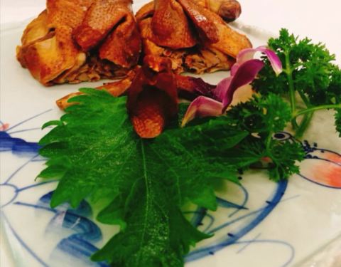 青笋拌蟹柳,清爽可口的一道菜,蟹柳在上,青笋在下成丝状,好看又好吃。 熏乳鸽,茶香熏鱼,熏菜很有特色,鱼有淡淡的茶香,乳鸽又酥又嫩。 秋葵山药,很好吃,营养丰富。 三鲜锅贴,肉大味道,很好吃。