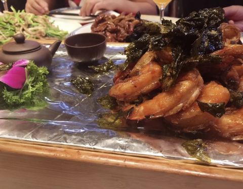- 内部装修很有特色,吃饭像是在穿越历史!菜品本身也可圈可点,大虾很好吃味道不同其他做法
