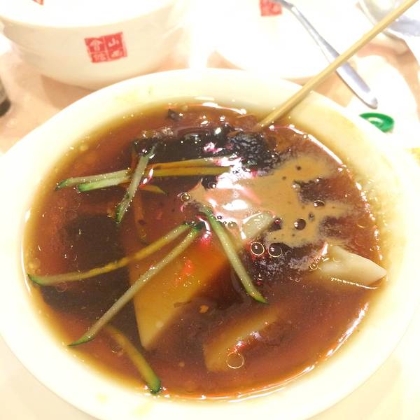 从小我就是一个希望自己生在古代的小孩。 生于江南,偏安一隅。这里是暖风熏得游人醉,直把杭州作汴州的临安旧故。离汴京的俗世纷争,血染雄关相隔几千公里。江南细软烟雨里的六朝古都,我们日复一日年复一年的城市生活里,没有外族践踏的铁蹄,没有叩破城门血泪流下的一丝丝痕迹。是张爱玲笔下,背着“商女不知亡国恨,隔江犹唱后庭花”的诗句,然而没有一点点旧日尘霾成长起来的南方孩子。 总是向往金戈铁马的。 人呢,总是羡慕自己没有经历过的东西。比如内陆的孩子,向往大海。南方的孩子,想看一看雪。而我们,生在江南,长在江南,总是想去瞧一瞧正统中原,最厚重的历史。 今年七月,在山西太原开一个学术会议,完了之后正好又是一个周末,于是跟方先生商量,是不是过来山西看一看。 下图是开会期间,和同事们在山西会馆吃的。因为方先生没有来太原,所以是本人用手机拍的。渣了点,但是想着得给广大人民群众普及下山西的美食(主要是面食),还是厚颜放上来了。