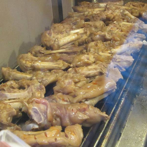 晋祠归来,直奔了同事推荐的小吃一条街,火车站倒数第二站。不得不提的是山西杨记灌肠、 人流火爆的烤猪蹄、乾隆三年老字号六味斋的羊肉串、郝刚刚的羊杂割、炒凉粉,还有路边的红糖月饼。