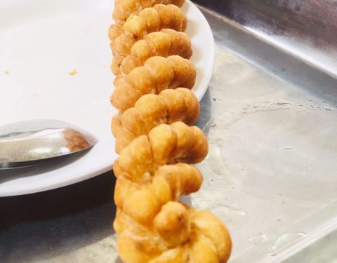 - 泡酥油饼,将硬的一面泡汤,酥脆的一面不要沾到,很好吃