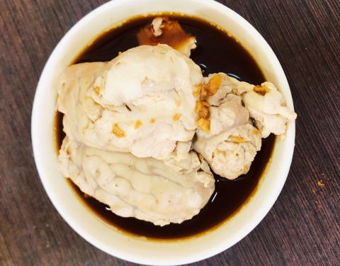 ·新鲜的羊肉,经过久熬的羊汤汆烫后,颜值奶白,口感醇厚; ·不同于以往的羊脑,他们家做的羊脑不过夜
