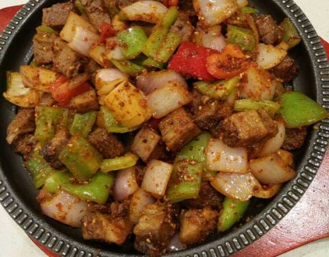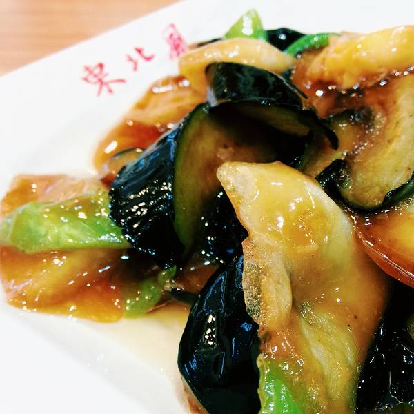 算不上地道的东北馆子,但是性价比高啊,味道也不错,比较清淡没有很重口味的。 服务员不够热情,我去的比较早,说了三位,服务员拿了三副餐具放桌上,没有摆好就离开了,茶也没有上,坐了很久才有人给倒茶。 菜单里有看到石锅拌饭。。炸了。。如此混搭的东北菜。这年头开个饭店也是不容易啊。招牌酱大骨 42/份 这个招牌就不用多说了,每桌必点,一个是10元,一份6个才42元当然是点一份咯。骨头都是挺大个的,没有很咸口味刚好,个别有几个肥肉有点多。带着手套啃着骨头的感觉太棒了,哈哈哈。地三鲜 18元 土豆,茄子,青椒炒制,裹了一层芡汁,色泽好看也更入味。苦瓜炒蛋。16元 小伙伴说要吃炒蛋,有番茄炒蛋,这个真没必要来饭店吃啊,我说还是苦瓜炒吧,清清火。苦瓜瓤有些没去除干净,特别苦,炒的火候是刚好的。小鸡炖蘑菇 35元 比较有名的东北菜啦,鸡块跟东北的蘑菇粉条炖一起,特别好吃,这个推荐点单。小伙伴惊讶的说道这不是蘑菇啊,有点像茶树菇,但其实这就是东北的蘑菇啊叫榛蘑,我特别喜欢榛蘑的味道,汤汁也很鲜,用的是粗粉丝很有嚼劲QQ的。东北拉皮。16元 之前没吃过,好奇于拉皮是啥才点的,原来拉皮就是平常麻辣烫里那种宽粉条啊,也是qq的有嚼劲的那种,像凉皮那样的拌法还是头一回吃,也不错啊。金牌手撕饼。20元/盘 类似手抓饼,印度飞饼那种口感,甜甜的,其实那么多菜都吃不下了,就吃了几口。
