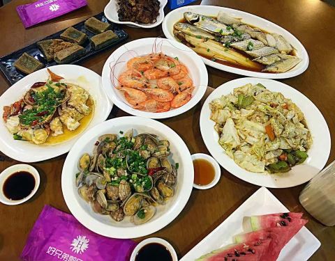 海鲜新鲜且价位合理,家常菜的感觉。 蒜蓉粉丝海鲜拼盘 海鲜的种类超多,扇贝,花蛤,青口,小青龙,鲍鱼,入味还不会盖过海鲜本身的鲜味,肉质很饱满,超新鲜的感觉,很会弹牙,缺点就是有点大,适合人多。 香煎杂鱼 不同种类的鱼+河虾,杂鱼经过油炸外皮酥脆,金黄金黄的,口感很棒里面肉飘飘的,需要蘸酱。 咸菜江白虾,烤瓷炉牛仔骨 ,椒盐虾,太爱了,家里做不出来的味道,全桌好评不断。 杂粮饼 爱吃主食的人要试试哦,淡淡的甜,外皮还有点脆脆的,里面很绵软。
