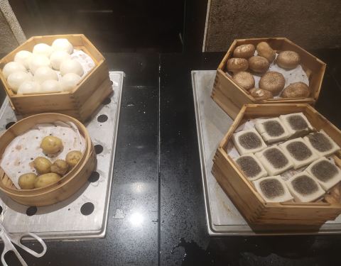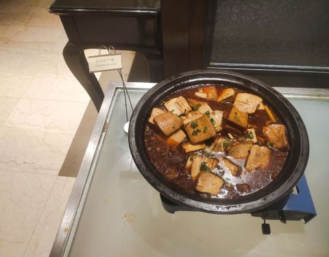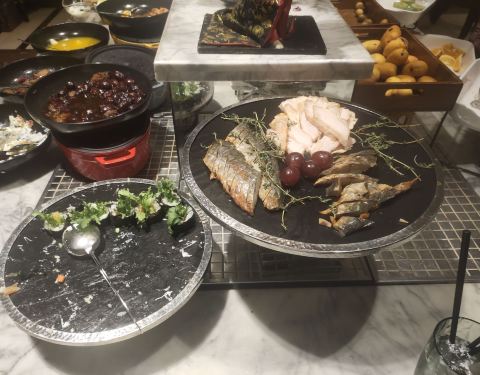 图是五月八号晚七点的实物图,水果品类还算多,但芒果清晰可见腐斑,大消耗品类补齐很慢。 冷菜区一言难尽,余姚市最高水准酒店?第一菜品奇少,第二补菜很慢,第三菜品下饭(我可以说您是临时中餐厅搬来的剩菜吗) 海鲜区菜品不多,但还过得去,只是都是市面上极为常见的品类,怎么说呢,经理你是走亲民路线了吗? 很多的小龙虾,有各种口味的,这个很赞,只是暖具奇缺, 很多小龙虾冷了就放在那,人家冷的当然不要,服务员一看很多也不上新,太棒了就全是同一批冷货。 热菜区,咳咳,这三玩意儿是啥?是我欣赏不了了 中式甜点区,超市柜台怎么卖你们怎么做是吧,懂了。 室内烧烤区,四个菜品,我都不好意思评论了,还有一块钱一根的骨肉相连???室外烧烤区我没有拍照,室外烧烤区品类不多不少,但是只有俩烧烤炉,您是给自个儿整个家庭烧烤派对么。 西式甜点区蛋挞好评,其他一般且品类奇少。 糕点区一般,波特曼水准吧。 冰淇淋这次不知道怎么了,全是化掉的,给服务员说明了他们并没有及时更换或处理(起码我注意的半小时内没有处理),而且没有服务员起球!服务员分布在酒水区,烧烤区和热冷菜区,为啥糕点和冰淇淋就没人?看不起吗?况且小孩不能自助起球,莫非酒店策划不知道小孩子喜欢吃冰淇淋吗? 当时的收费标准是168/人,我大概吃了十块钱的鸡胸肉吧,还是抢到的烧烤鸡胸肉,太赞啦呵呵