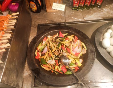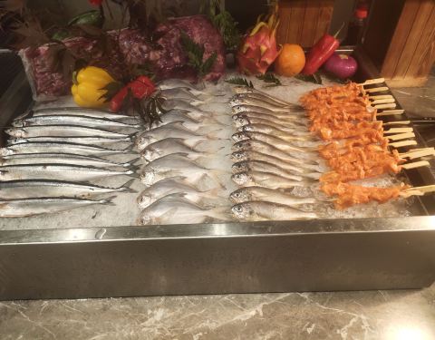 图是五月八号晚七点的实物图,水果品类还算多,但芒果清晰可见腐斑,大消耗品类补齐很慢。 冷菜区一言难尽,余姚市最高水准酒店?第一菜品奇少,第二补菜很慢,第三菜品下饭(我可以说您是临时中餐厅搬来的剩菜吗) ...图是五月八号晚七点的实物图,水果品类还算多,但芒果清晰可见腐斑,大消耗品类补齐很慢。 冷菜区一言难尽,余姚市最高水准酒店?第一菜品奇少,第二补菜很慢,第三菜品下饭(我可以说您是临时中餐厅搬来的剩菜吗) 海鲜区菜品不多,但还过得去,只是都是市面上极为常见的品类,怎么说呢,经理你是走亲民路线了吗? 很多的小龙虾,有各种口味的,这个很赞,只是暖具奇缺, 很多小龙虾冷了就放在那,人家冷的当然不要,服务员一看很多也不上新,太棒了就全是同一批冷货。 热菜区,咳咳,这三玩意儿是啥?是我欣赏不了了 中式甜点区,超市柜台怎么卖你们怎么做是吧,懂了。 室内烧烤区,四个菜品,我都不好意思评论了,还有一块钱一根的骨肉相连???室外烧烤区我没有拍照,室外烧烤区品类不多不少,但是只有俩烧烤炉,您是给自个儿整个家庭烧烤派对么。 西式甜点区蛋挞好评,其他一般且品类奇少。 糕点区一般,波特曼水准吧。 冰淇淋这次不知道怎么了,全是化掉的,给服务员说明了他们并没有及时更换或处理(起码我注意的半小时内没有处理),而且没有服务员起球!服务员分布在酒水区,烧烤区和热冷菜区,为啥糕点和冰淇淋就没人?看不起吗?况且小孩不能自助起球,莫非酒店策划不知道小孩子喜欢吃冰淇淋吗? 当时的收费标准是168/人,我大概吃了十块钱的鸡胸肉吧,还是抢到的烧烤鸡胸肉,太赞啦呵呵