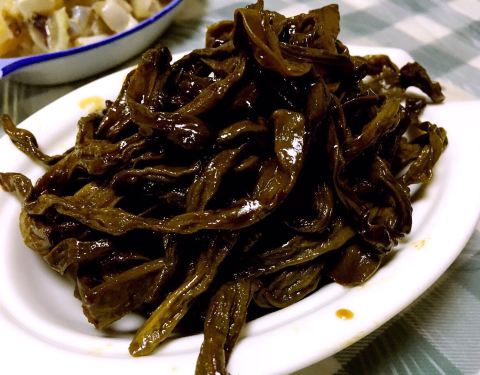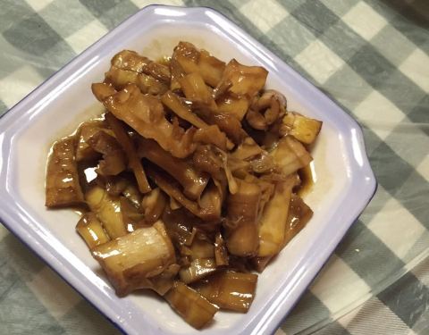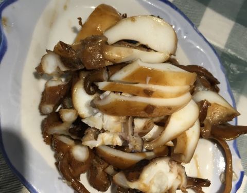 最爱墨鱼大烤,这里是宁波的做法,不见五花肉,而用卤汁和墨鱼一起加水焖煮,腌渍入味,当下酒菜极妙