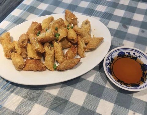 老板娘非常利索,四个人点了8个菜,说我们吃不完,结果证明菜确实好吃,话梅花生好吃,豆腐蟹很鲜嫩...