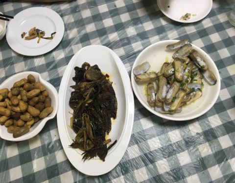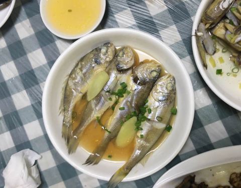 门面不是很起眼,但是却是一家人气很旺的餐厅,还好去的早,不然都没菜了,才很新鲜,上下两层,不是很大,家常菜,老板娘非常利索,四个人点了8个菜,说我们吃不完,结果证明菜确实好吃,话梅花生好吃,豆腐蟹很鲜嫩,葱烤鲫鱼很入味,花菜也很嫩,烧鹅,韭菜炒蛋,蛏子很干净,清蒸小黄鱼,一共300大洋,很实惠