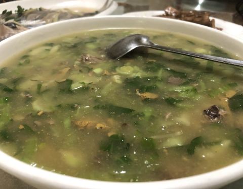 算是老牌的宁波小馆子,也是听了推荐过来的,解放南路边上,来来去去那么多次,竟然从来没注意到 相比春鹤,这家有点小饭店的模样,两层楼,有包厢,桌椅也是有点老底子饭店的样子,热水瓶看着很亲切 网上推荐的红烧拉丝,就是青蛙啦,这保护动物其实宁波人餐桌上不少见,当然现在少了,拉丝实在烧的咸,红烧的口味感觉还没我爸做的好吃,拉丝肉也有点老,可能现在也收不到好的了,招牌菜有点失望 蟹酱,还可以,没膏就差点意思了,蟹肉还甜嫩的,虽然挺咸 宁式鳝丝,外面很少点这道,因为不会像家里一样放好多黄鳝,不吃韭菜专挑鳝丝 塌扁土豆,土豆很细,选的好,煎的还可以,个人喜欢的口感是煎的更久一些 酱油黄蚬汤,这东西真蛮老底子的,我应该没吃过,家里不做,酱油汤味道还比较鲜 可以作为家常菜吃吃,不过也没有特别之处,调味没春鹤的巧思,食材也挺普通