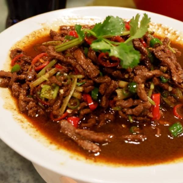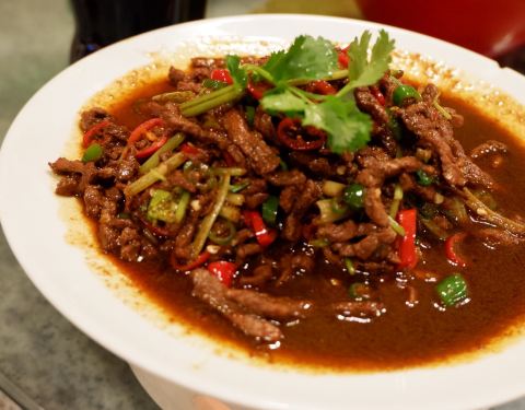据说是吃完以后肯定能记住的一道菜,确实,特别下饭,份量也很足,切得小小的一块块,特别的入味,牛肉很鲜美,特别嫩,喜欢这个,牛肉鲜美,调汁成功,真的会让人回味无穷啊。