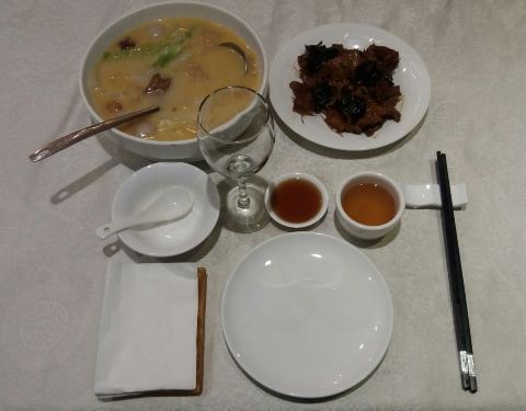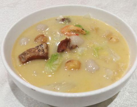 - 三鲜汤,食材新鲜,味道鲜美,只是略微有点带咸了。目的也就是尝尝东福园的味道