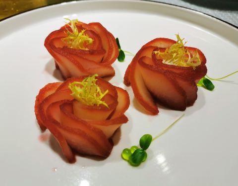 聚是一家做江浙菜的私房菜馆,菜很精致,环境也不错,图七是葡萄酒泡雪梨
