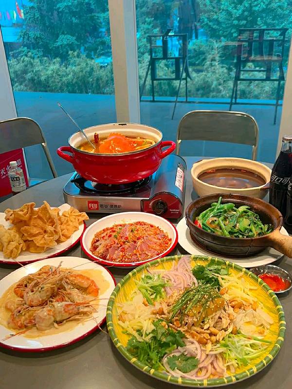 一家来自广州的大排档 没想到空降成都啦! 就在东大街,离春熙路超近的 正好跟朋友出去去尝尝 . 辣汁花甲煮肉蟹 超大一锅,花甲和螃蟹的标配 辣辣的很符合四川人口味 冬阴功的味道我超喜欢的! . 香草奶油有膏罗...