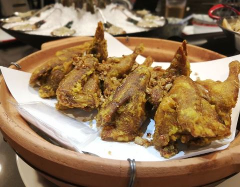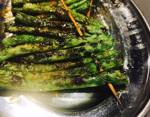 快过年了,抓紧时间买新衣服,商场里面新开的店,装修果然很有大排档风格,地方大,门口还有大海鲜池。 进去后,服务员很快安排座位。 石锅啫啫雪花肥牛,香喷喷吱吱的响,洋葱和大葱调味,一颗颗肥牛饱满,做得够香够入味,还有切片杏鲍菇,做得很好吃。怀旧五柳炸蛋很有儿时的回忆,酸甜可口,有了它可以吃上一整碗饭。 菜牌里有好多烧烤,有我爱吃的烤四季豆,嘴馋点了一份,味道不会太咸,四季豆够爽好吃。