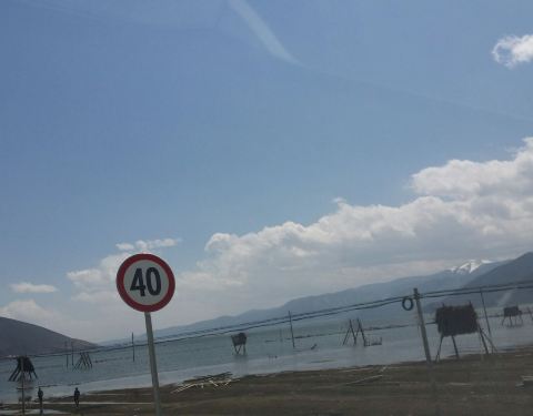 环湖路的西线,水天一色,游客也比较少,视野非常开阔
