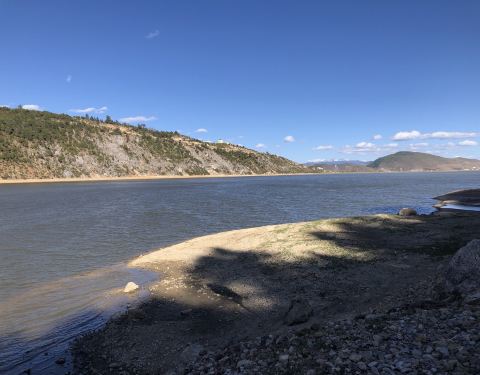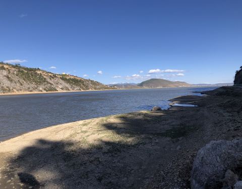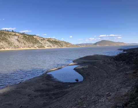 去的时候正是雨季向旱季的过渡时节,湖水慢慢褪去,绿色的草场逐步扩大,走在环湖路上,可以看到一半是湖水一半是草地的奇景,周边群山环抱,风光无限。