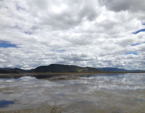 纳帕海有一条环湖公路,沿着环湖路逆时针,可以找到下到水边的地方。环湖路的西线,水天一色,游客也比较少,视野非常开阔。感觉和大理的洱海有点相像,好吧,美景可能都差不多吧。