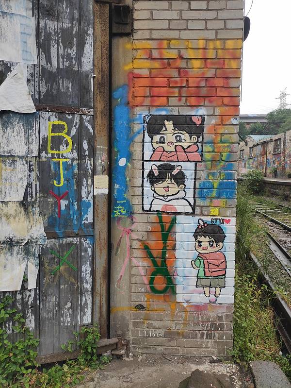 军哥书屋位于铁路四村,紧挨着铁路的一家平房老书屋,从交通茶馆出来后,按着导航走了十多分钟才到。去往军哥书屋的途中,路过老房子,很多都已经写上了“拆”的字样,居住在这里的人也少了。 现在的军哥书屋也跟以前的不一样了,有了一些改变,比如门口的样子,周边的环境等等。 跟老板聊过了,等周围的人都搬走了,附近也差不多该动工拆迁了,到时候书屋还会不会存在也是个未知数了。对面的墙上画满了涂鸦,BJYX的可爱图也有很多。
