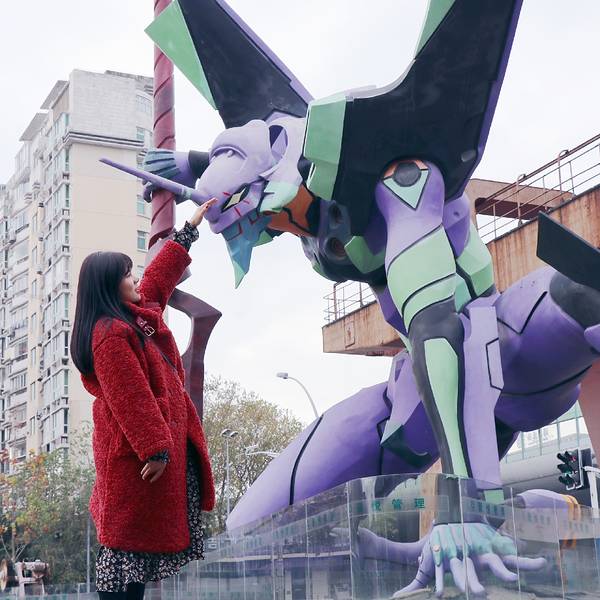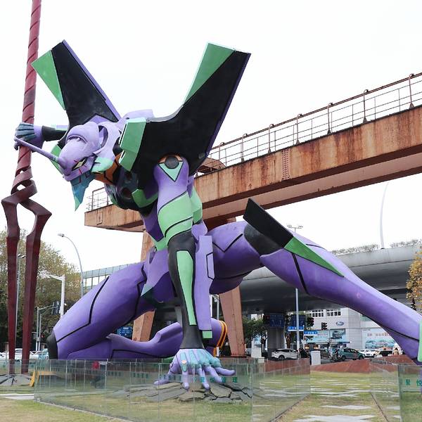 EVA初号机最早是展示在2016年的上海ChinaJoy展上,当时娱乐圈的汪东城在CJ开幕的第二天就来到上海与初号机合影打卡,可见这座EVA初号机的受欢迎程度!2018年1月6日,这座EVA初号机在静安新业坊首次对外亮相,目前已成为了全球EVA铁粉们的朝圣之地。