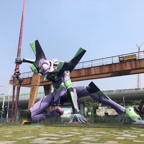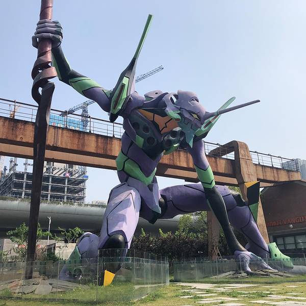 这是一座EVA初号机的模型,模型在汶水路上的一个创意园区里,远远就能看到庞大的初号机,颇有使徒来袭的感觉。看到这样庞大的模型对于EVA爱好者来说非常激动。在初号机旁边有一块牌子介绍说这是1:1比例的模型,是日本官方授权的。 模型所在的园区应该是一个主做动漫产业的园区,所以在园区内还有其他动漫人物的模型,不过总的来说还是初号机比较震撼,推荐同好打卡。