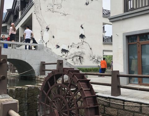 塞外江南位于河北省兴隆县,2017年建成,是承德地区一个新兴的人文旅游景点。刚走进水镇,发现这个水镇承袭了江南小镇建设的主要特点,主建筑以江南的青瓦白墙风格为主调,江南街巷、院落、桥梁等元素随处可见,传承了江南文化的内涵与精髓,水墨丹青的江南图案沿街建筑物墙体上时有出现,江南的秀气淋漓尽致。基本上都是人文建造,仔细逛一逛其实也没太大意思