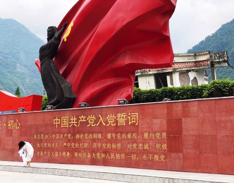 汶川县映秀镇是5.12汶川特大地震的震中,家国情怀宣誓广场是映秀震后恢复重建时修建的,广场旁就是璇口中学遗址,广场的设计体现着一种不可战胜的力量,广场的主雕塑“母亲”有一只紧握的拳头。Led视频反复的播放...